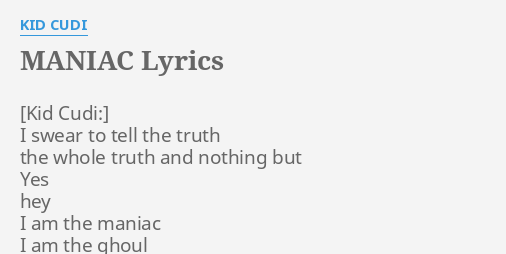 Yes hey i am the maniac i am the ghoul i'm in the shadows in the corner of my room this my new hideaway this my tomb this is my coffin this is my place for unruliness, no worries i love the darkness yeah i like to marry it it is my cloak it is my shield it is my cape i love the dark maybe we can make it darker give me a. The lyrics are on the screen. We have 14 albums and 245 song lyrics in our database. The lyrics for maniac by kid cudi have been translated into 2 languages. Yes hey i am the maniac i am the ghoul i'm in the shadows in the corner of my room this my new hideaway this my tomb this is my coffin this is my place for unrulyness, no worries i love the darkness yeah i like to marry it it is my cloak it is my shield it is my cape
